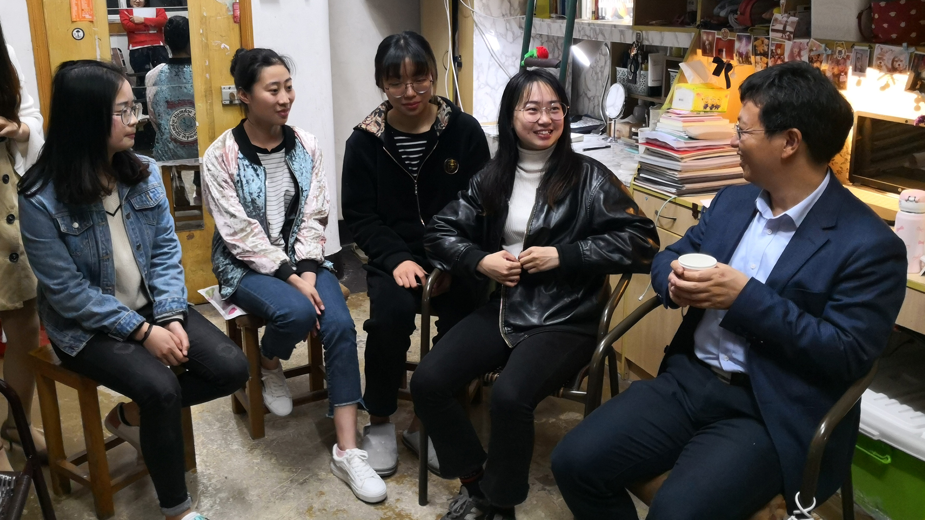 学生寝室,受到了同学们的热情欢迎。同学们在寝室里以尤克里里自弹自唱一曲《成都》,获得了邵校长的赞赏。走访中,邵校长仔细询问了同学们的生活、学习等各方面情况,深入了解大家的生活节奏和学习态度,并鼓励同学们要练好基本功,成为有素养、有情怀、有专长的学子,为今后成长成才奠定基础。同时,邵校长也听取了同学们对寝室环境、教学条件、生活设施等方面的建议。