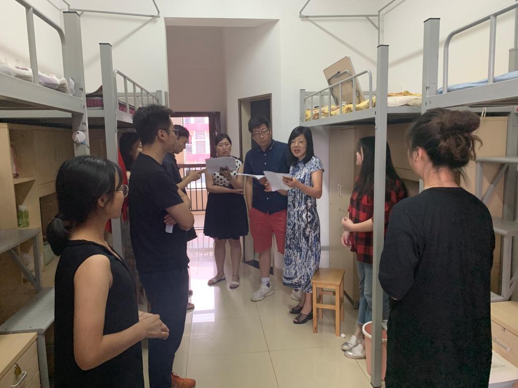 党总支书记刘缨,学工办主任于丽丽,研究生辅导员徐德猛,科研办白冰,19级研究生班主任常振华等院领导老师前往甬江研究生公寓走访研究生新生寝室,对成人动作片