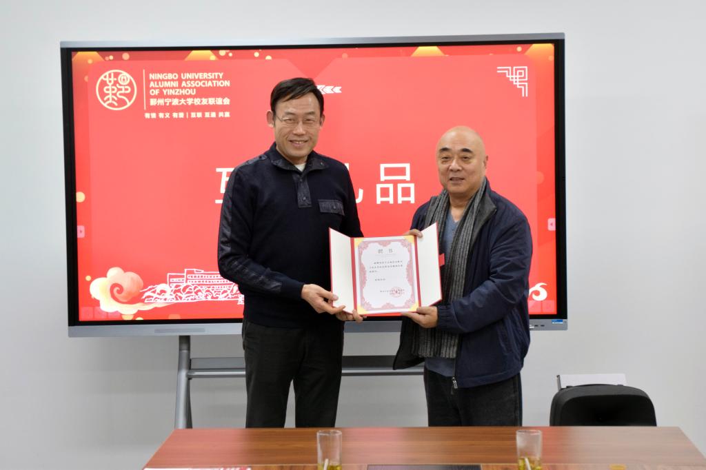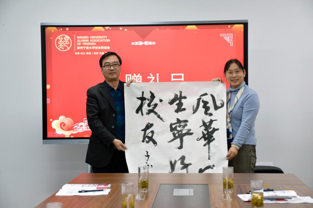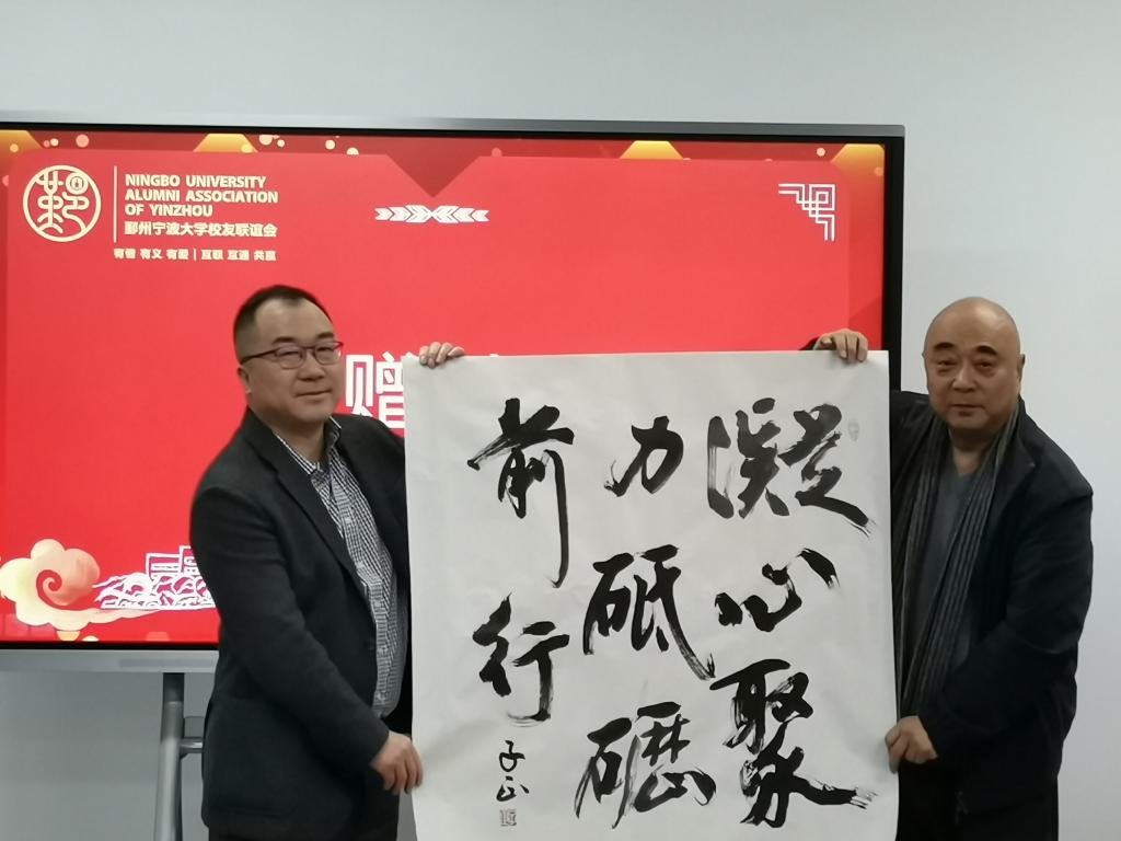 赠送俞子正院长亲笔书法:“凝心聚力 砥砺前行”“风华一生 宁好校友”,为校友们送上美好祝福。同行人员还在庄学东秘书长的带领下,参观了宁波大学校友企业家促进会的展厅。