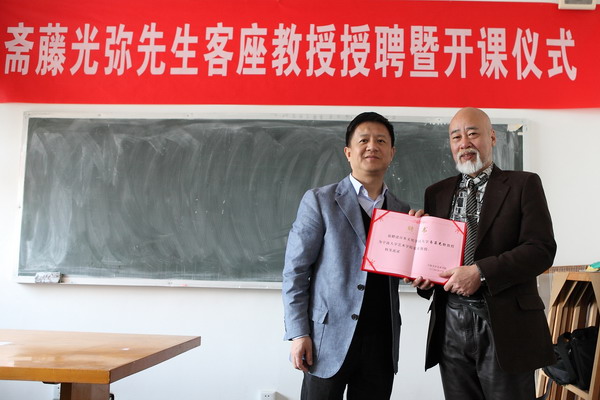 讲座开始前,院长喻辉为斋藤光弥先生颁发了“客座教授”荣誉聘书。(徐时程)
