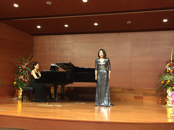 晚7时,在一曲《美丽的西朗卡普》的欢快优美旋律中,音乐会拉开帷幕,张建国教授的得意门生陈诗意、金叶、孟倩、郑慧元、邬梦婷、张岚、刘室麟、张艳、曾广正等为宁大师生倾情奉献了《高山流水》、《昭君出塞》、《关雎》等极具中国古典魅力的艺术歌曲;《故乡是北京》、《我爱这土地》、《春天的芭蕾》、《海峡写意》等当代创作的歌曲则将爱国热情表现得淋漓尽致;《耳边响起他的声音》、《卡迪斯城的姑娘》、《爱的小径》、《被禁止的爱》、《静卧在芙蓉帐里》等西方艺术歌曲与歌剧咏叹调,则使听众深切感受到别样的异域风情与高雅的艺术格调。18首风格迥异的歌曲在张建国教授学生的演绎下,或轻灵活泼、回味悠远,或高亢明媚、大气恢宏,他们那灿烂的音色、扎实的演唱功底和良好的艺术表现与二度创作震惊四座,观众纷纷颌首赞许,并毫不吝惜自己的掌声。在全体演员共同演唱的《为你歌唱》的动人旋律中,音乐会在一片热烈掌声圆满结束。(黄敏学)