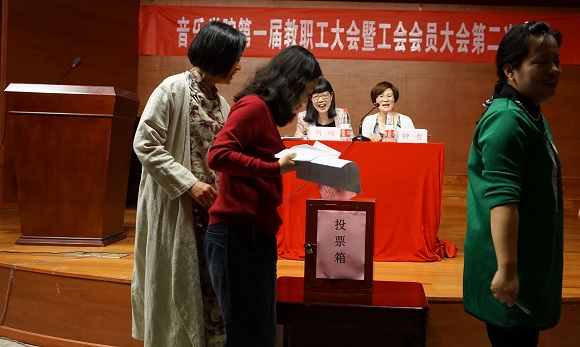 5月20日中午,音乐学院第一届教职工大会暨工会会员大会第二次会议在小音乐厅隆顺利召开。音乐学院工会主席钟青老师主持会议,音乐学院全体教职工参加。 会上,院党总支书记刘缨就《音乐学院第六轮岗位设置与聘任实施方案》的制定过程、征求意见情况、修订及改进、额定工作量及等赋分等进行了详细的解读与说明,并期待全体教职工以饱满的工作热情,结合自身的特长和音乐学科的特色,积极参与到学院的发展中去,做出更大的成绩。会议以无记名投票表决的方式,通过了《音乐学院第六轮岗位设置与聘任实施方案》。