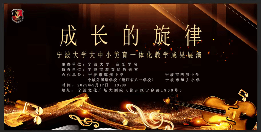 当童真与专业共鸣,当传承与创新碰撞,一场跨越学段的美育盛宴即将点燃艺术与教育的火花!2025年9月17日19:00,“成长的旋律”宁波大学大中小美育一体化教学成果展演将在宁波文化广场大剧院拉开帷幕。宁波大学音乐学院携手宁波市鄞州中学、宁波市四明中学、宁波外国语学校(浙江省八一学校)和宁波市镇安小学,通过音乐、舞蹈、戏剧等多元化的形式,全面呈现大中小美育一体化建设的创新实践与丰硕成果!