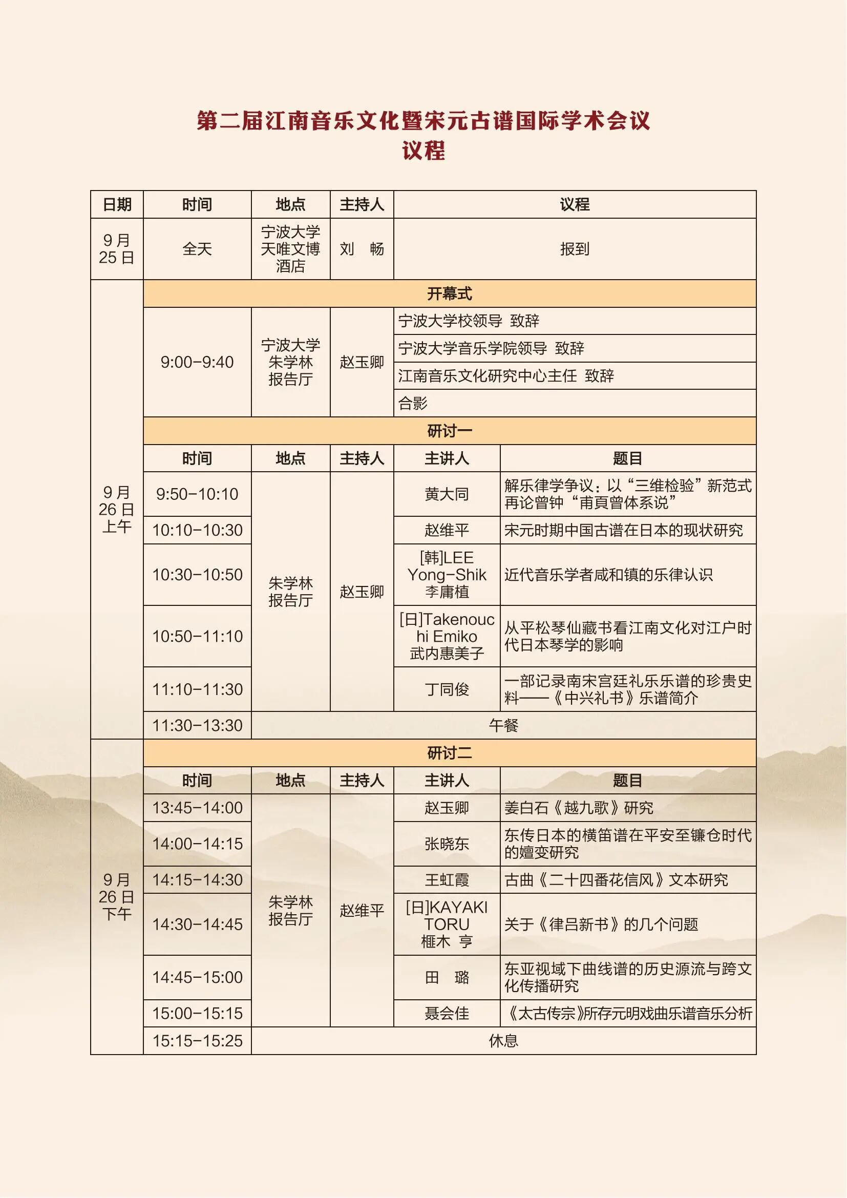 “第二届江南音乐文化暨宋元古谱国际学术会议”拟于2025年9月25-27日在宁波大学举行。本届会议将围绕江南音乐文化、宋元古谱等学术研究新成果进行交流和研讨。