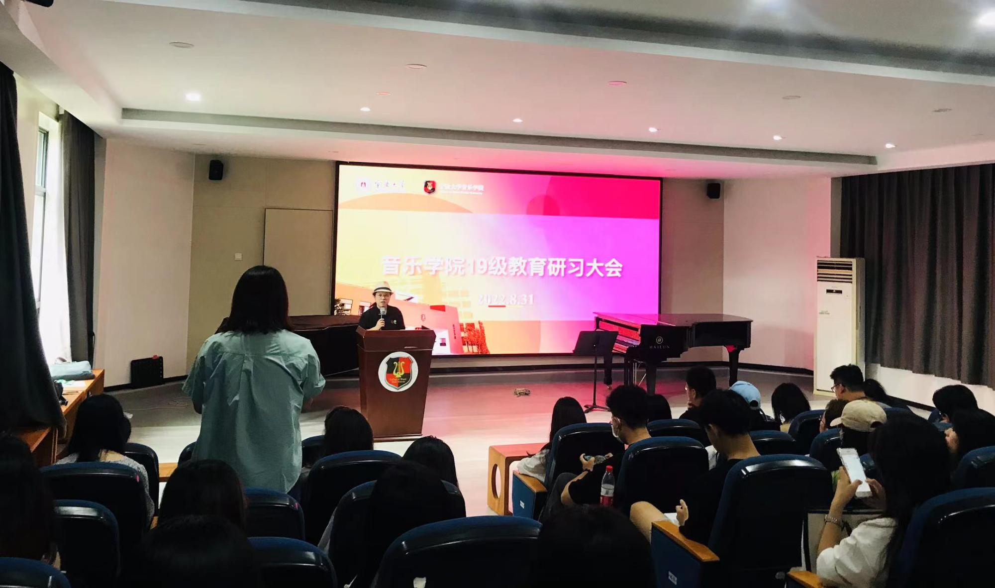 为确保实习工作顺利有序开展,帮助学生尽快适应实习生活,音乐学院于8月31日上午在阶梯一召开2022年教育研习大会。此次会议由教学副院长王蕾教授主持,19级全体同学参会。