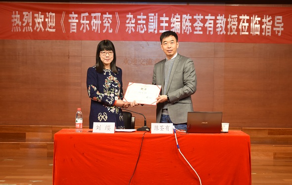 学术报告结束后,由音乐学院刘缨书记作了总结性发言,并代表音乐学院为陈荃有教授颁发了音乐学院客座教授的聘书。