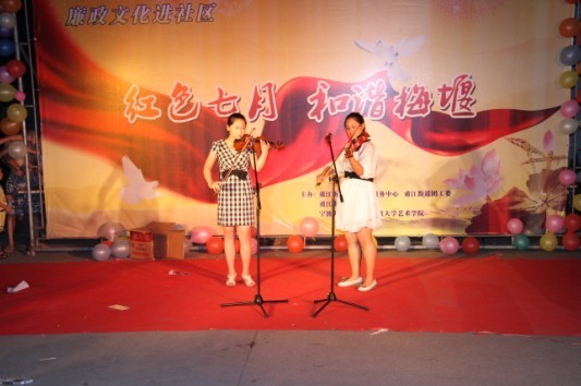 7月18日晚7点,江北区甬江街道梅堰社区的新文化广场上,人头攒动,琴声悠扬,一场精彩的以“红色七月,和谐梅堰”为主题的纳凉晚会正在这里举行,吸引了众多居民驻足观看,为这炎炎夏日吹起一阵和谐、文明、温馨的清风。校团委书记周青、商学院党委书记熊德平、成人动作片