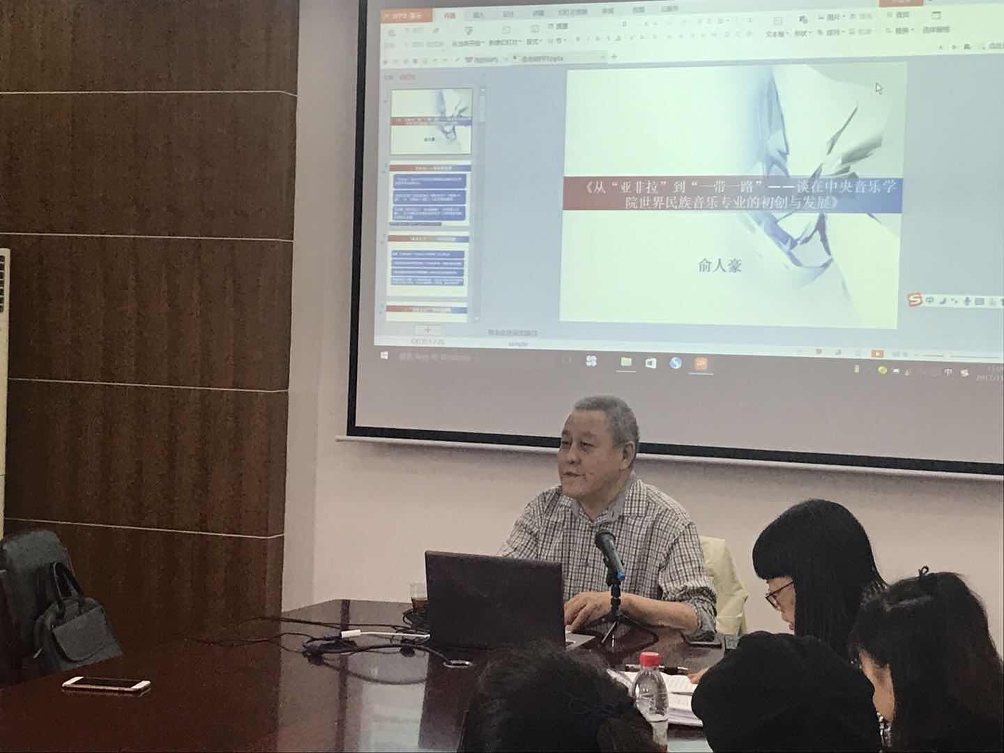 2017年11月13日下午3点在宁波大学西校区厚德楼音乐学院408会议室,由中央音乐学院音乐学系教授俞人豪主讲的学术讲座顺利举行,讲座主题为《以“亚非拉”到“一带一路”——世界音乐专业在中国》。参加聆听讲座的人员有:音乐学院刘缨书记、王自东教授、杨红光副教授、学院各教研室老师代表,以及学生代表等。此次讲座主要是以中央音乐学院为例,阐述世界民族音乐专业的初创与发展。内容分为四个时期:第一,亚非拉---学科孕育期;第二,“拿来主义”---学科初创期;第三,引进来与走出去---学科发展期;第四,面向全世界---双向平等交流期。在整个讲座过程中,俞人豪教授以自身的人生体会为例,对逐个时期展开讲解,内容生动丰富,引人深思。在讲座结尾处,俞人豪教授提出:作为中国人研究世界民族音乐应该有自己的立场和视角,应该在音乐国际论坛上阐述自己的观点,在舞台上发出自己的声音,正如习近平总书记在“一带一路”国际合作高峰论坛开幕式上所描绘的美好愿景那样:我们将建设丝绸之路沿线民间组织合作网络,打造新闻合作联盟,音乐教育联盟以及其他人文合作新平台。”(顾君嘉)