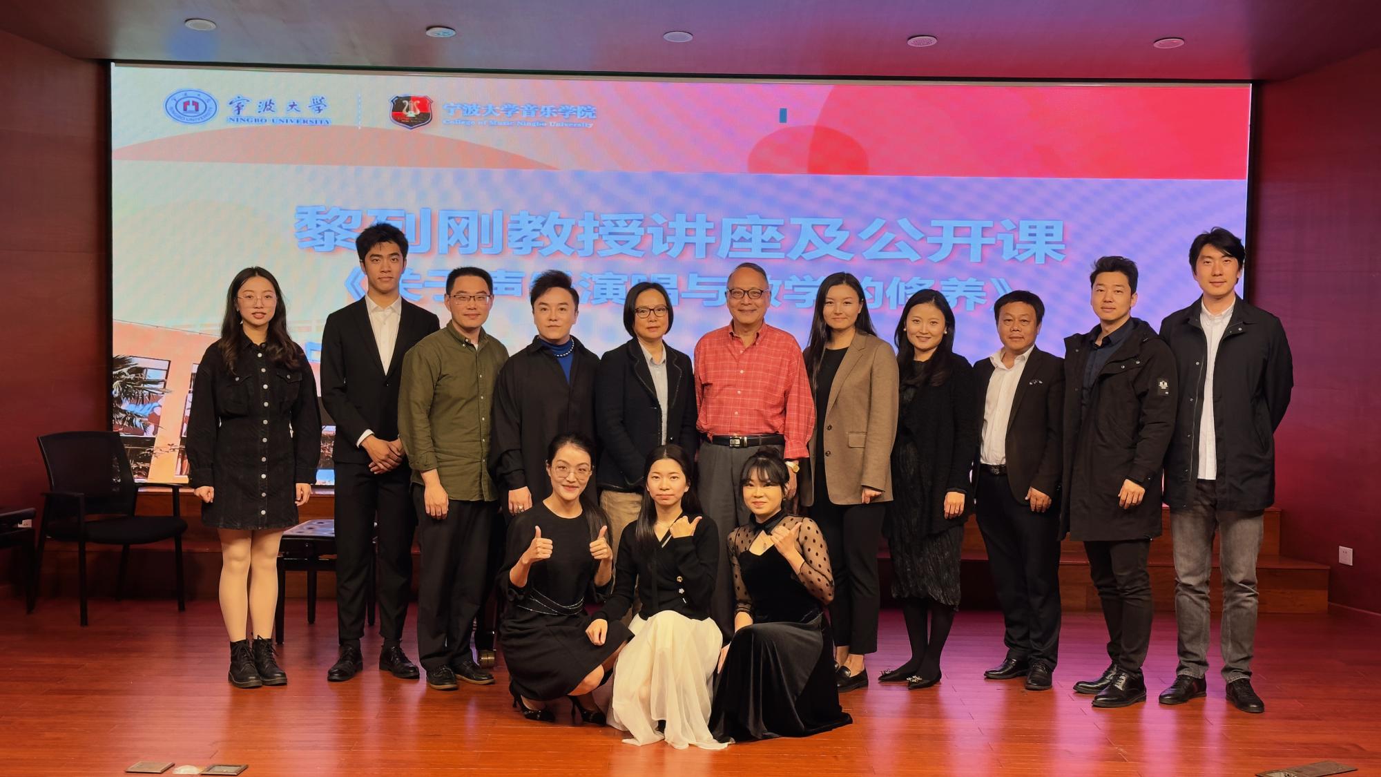 2022年10月31日-11月1日,男高音歌唱家黎列刚(黎天铭)教授做客宁波大学,在宁波大学西区小音乐厅为我院进行了题为《关于声乐演唱与教学的修养》的学术讲座。讲座内容从“咬字要规范、把歌唱气息变成平时生活的常态、把高位置的发声作为生活的常态、关于歌唱的意境”四个方面与师生们分享了自己的艺术实践与理论所获,并于师生们进行了问答的互动交流。公开课环节中,黎教授耐心细致地对四位本科、四位研究生从歌唱语言、发声技巧、艺术表达等方面进行了悉心指导。