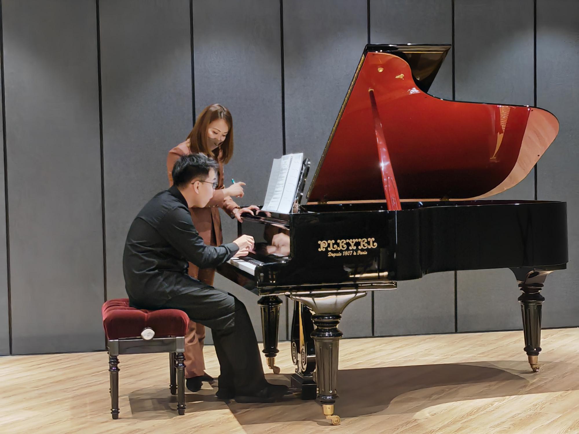 两位教授分别结合作品风格、背景,对每首作品的钢琴技巧与乐句、乐段进行了深入的分析与处理,尤其指出了踏板在钢琴演奏中的重要性以及如何在乐句的行进中更好地换踏板,使在场师生感受颇深。在乐句处理上,萧教授强调在演奏长句子时要想大线条;在演奏和弦时上,康教授指出如何正确施加手臂力量,使之能发出更悦耳的声音。同时两位教授都提出耳朵聆听在练习中的重要性,在踏板、音乐处理等方面都具有很重要的作用。