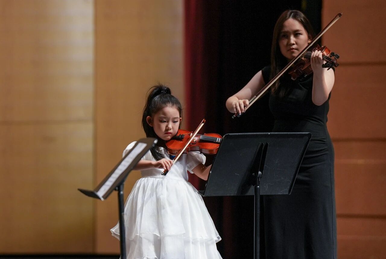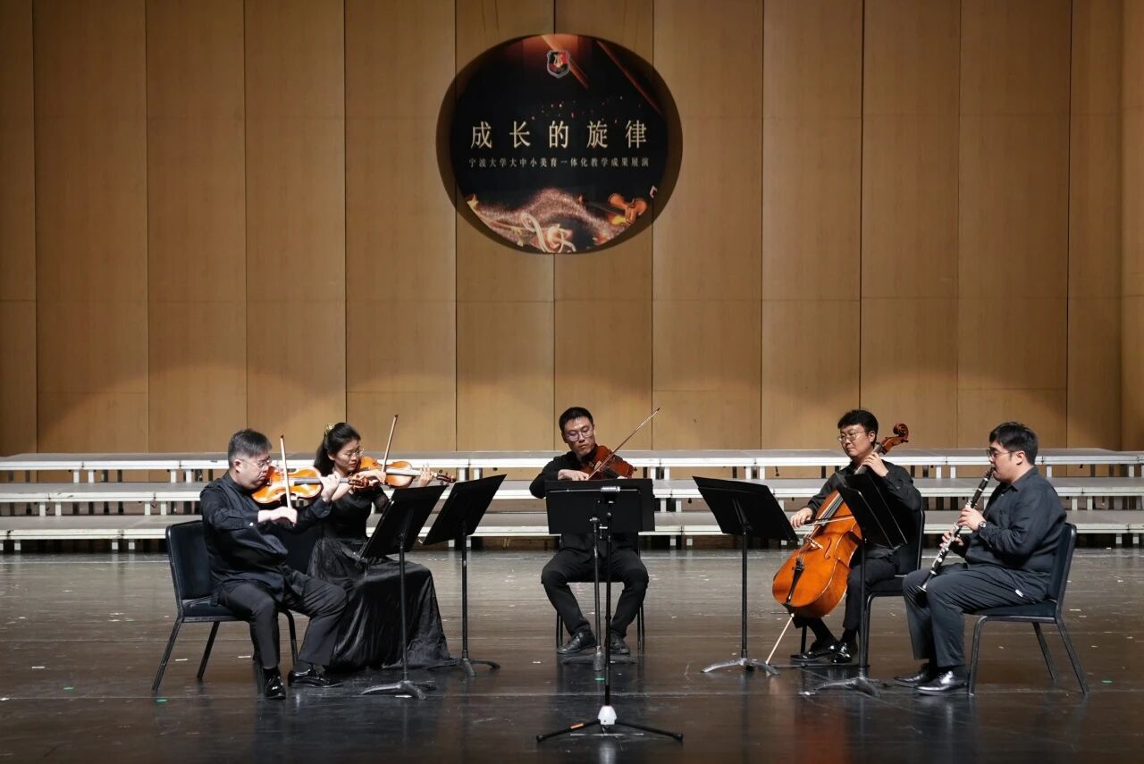 美育一体篇则更侧重“大中小学一体化”的融合教育,由音乐专业师生与镇安小学、四明中学、鄞州中学共同演绎,从略带俏皮的小提琴重奏《牛虻前奏曲》到感人至深的表演唱《星星点灯》,再到高水准合作的中国民族室内乐《敦煌新语》,展现了“美育一体”教学实践的多学段丰硕成果。