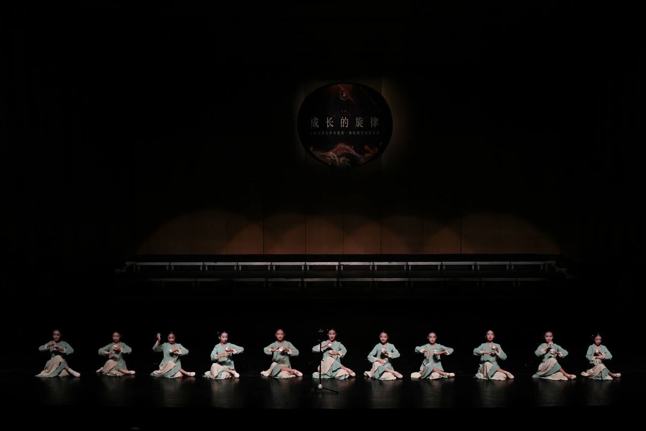 本次展演由高校、中学、小学等多个学段的学生和授课教师共同出演,全篇共六个篇章十六首作品,分为:序章、经典作品篇、传统文化篇、浙东音韵篇、美育一体篇、尾声,运用器乐、演唱、朗诵、情景剧等多种表现形式,囊括古今中外的经典作品,通过大学生与中小学生同台演出,高校教师与中小学教师共同指导的“跨学段协作”不仅提升了节目质量,更实质性地推动美育教学内容的衔接与升华。向现场观众呈现了“大中小”美育课程深度合作的成果,是宁波大学“大中小美育一体化实践基地”建设最新实践成果的综合展示。