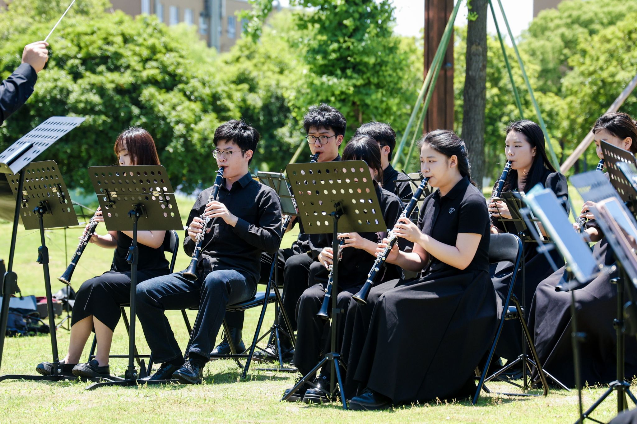 2024年5月29日,宁波大学音乐学院交响乐团在大草坪上举办了一场别开生面的午后阳光音乐会。此次音乐会以管乐声部专场为主题,汇聚了众多音乐才子的激情与才华,为在场的观众带来了一场音乐的盛宴。音乐学院院党委书记孔晓虹及宣传部副部长黄佳男出席此次音乐会。