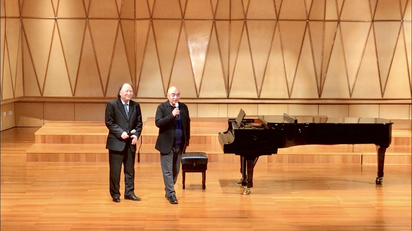 音乐会正式开始前,俞子正院长为音乐会致辞。晁浩建教授回忆往事,想起与俞院长在上海音乐学院共同学习的日子,感叹岁月蹉跎,同时也感谢宁波大学音乐学院本次的邀请,感谢俞院长在声乐教育领域做出的贡献。