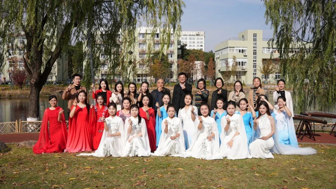 本次音乐会,音乐学院古筝老师周诗瑶和盛玥与同学们同台演绎了数首古筝经典曲目。古筝重奏《梦回临安》,此曲是作者读岳飞《小重山》一词有感,用如山涧泉鸣、似环佩铃响的古韵筝声带领大家梦回旧时临安,仿佛穿越时空回到了那一段如烟的历史往事中。还有《桃花源》、《我的祖国》、《袖梦》、茉莉花》等曲目,琴声曼妙  悠扬悦耳,指尖抚上琴面,凝神于琴谱 聚力于琴弦音乐便流淌开来,谱写出每个宁大人心中的秋日向往。