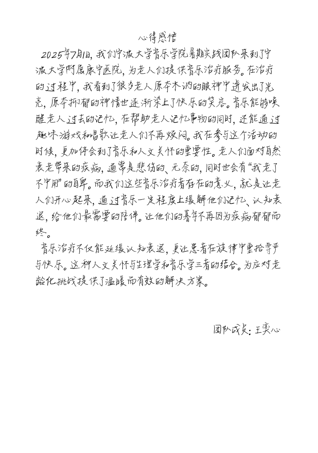宁波大学“以音筑爱,疗愈康宁”暑期实践团队正是基于这一背景,走进宁波康宁医院,聚焦老年患者需求,采用怀旧式音乐治疗方案开展实践服务,旨在通过音乐的力量为老人搭建心灵疗愈的支持网络,助力守护老年群体的心理健康。