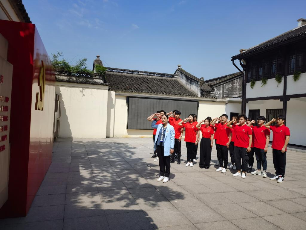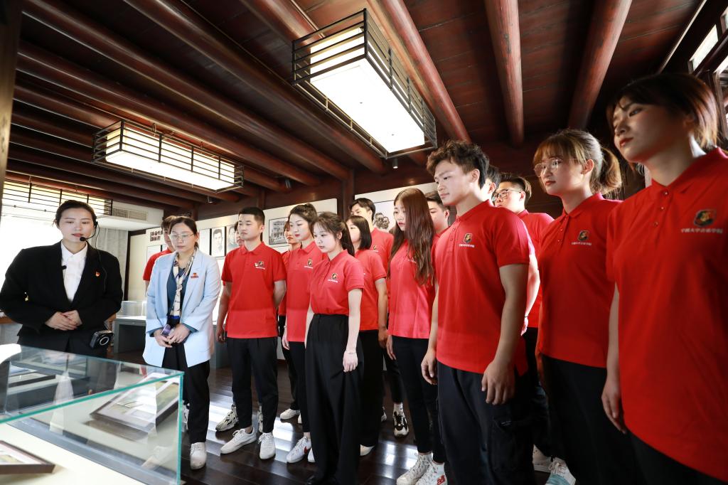 2021年4月9日上午8:30 ,音乐学院党总支书记屠春飞与红色文艺轻骑队成员在宁波大学西区小音乐厅集合,前往张人亚故居参观学习,听学堂讲解员讲述张人亚守护党章的故事。