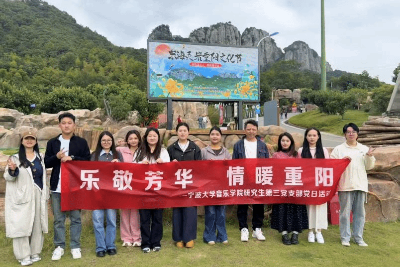金秋送爽,丹桂飘香。在重阳佳节来临之际,宁波大学音乐学院组织研究生第三党支部全体党员在2025年10月26日奔赴象山东海灵岩景区,开展了一场以“乐敬芳华,情暖重阳”为主题的党日活动。