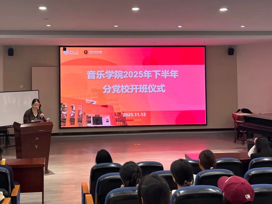 2025年11月12日中午,音乐学院2025年下半年分党校、团校开班仪式暨开班第一课在音乐学院101报告厅隆重举行。音乐学院党委书记孔晓虹、学生工作负责人徐德猛出席仪式,全体学员齐聚一堂,共同开启一段重要的理论学习与党性锻炼之旅。