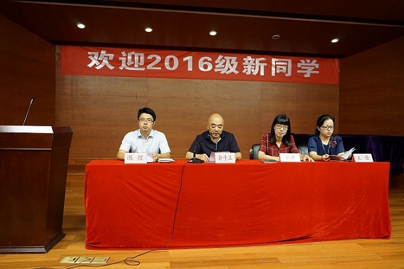 典礼第二阶段,院长助理陈煜对新生们进行了始业教育,包括:评奖评优、寝室文明建设、安全教育以及党建等方面,帮助新生更快熟悉和适应大学生活。