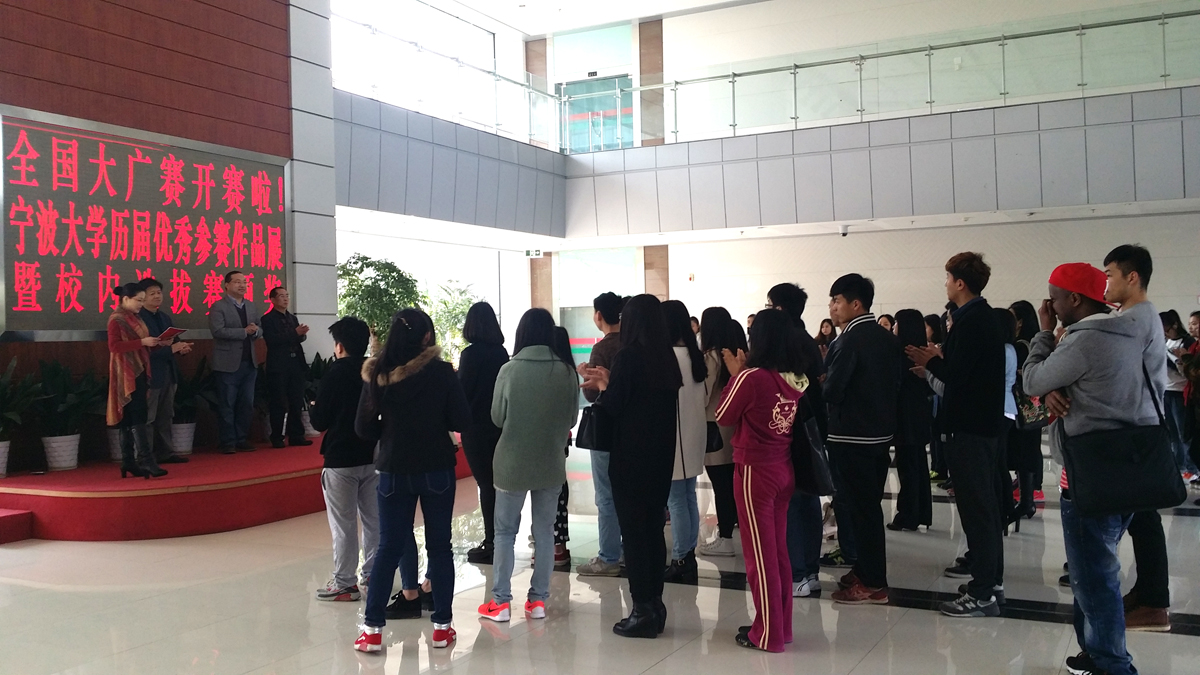 4月13日上午9时,宁波大学历届大广赛优秀参赛作品展开展仪式暨2014年第六届大广赛校内选拔赛颁奖活动在宁波大学安中大楼一楼举行。活动由艺术学院副院长狄智奋主持,艺术学院院长喻辉教授、书记段汉武教授、教务处王晓东副处长出席了活动,并为获得2014年第六届大广赛校内选拔赛一、二等奖的同学颁发了获奖证书。