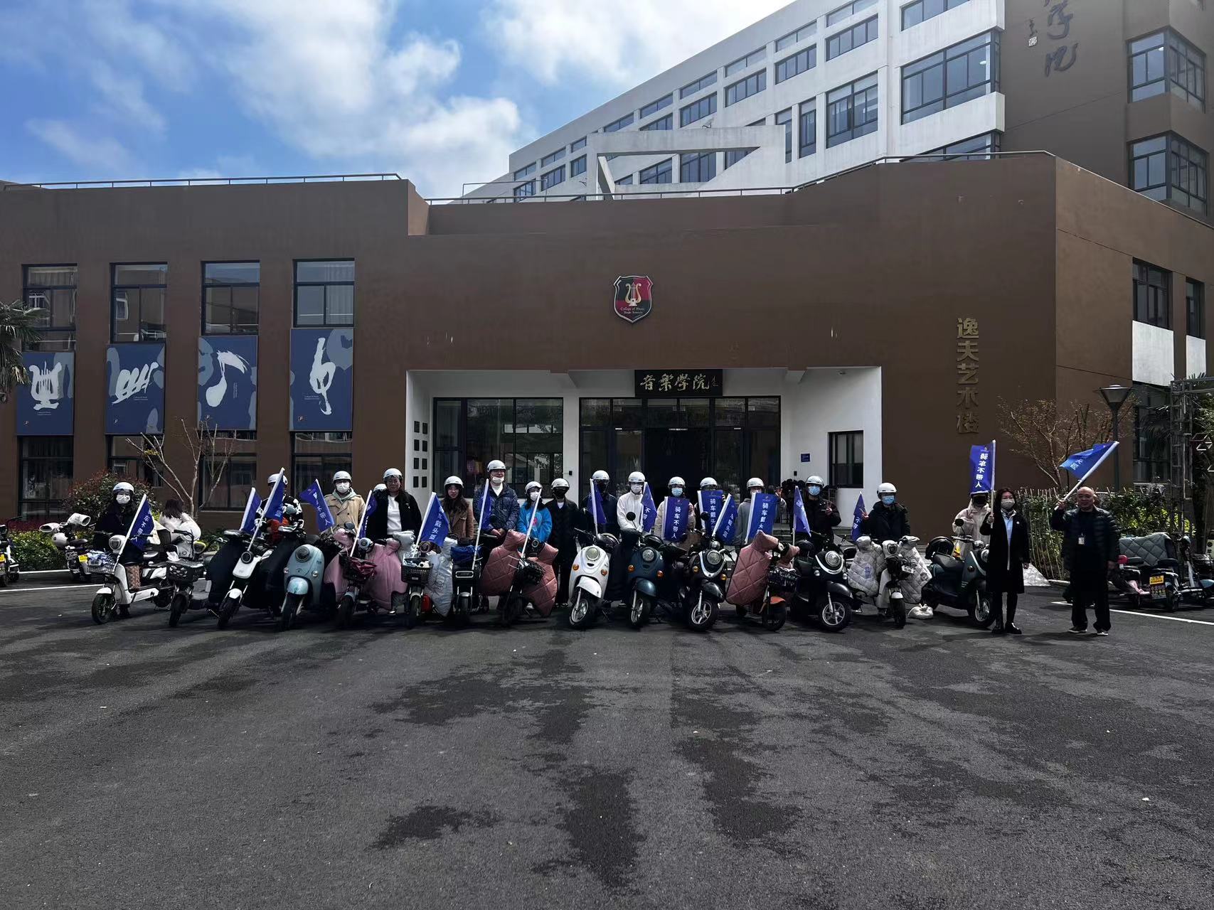 作为起始点,行进在安中大楼、包氏教学楼、真诚图书馆、白鹭林等地进行宣传,引导同学们在骑车过程中关注自身安全,倡导文明出行,引起了众多师生的关注,也展示了学院对于校园骑行安全的重视和支持。