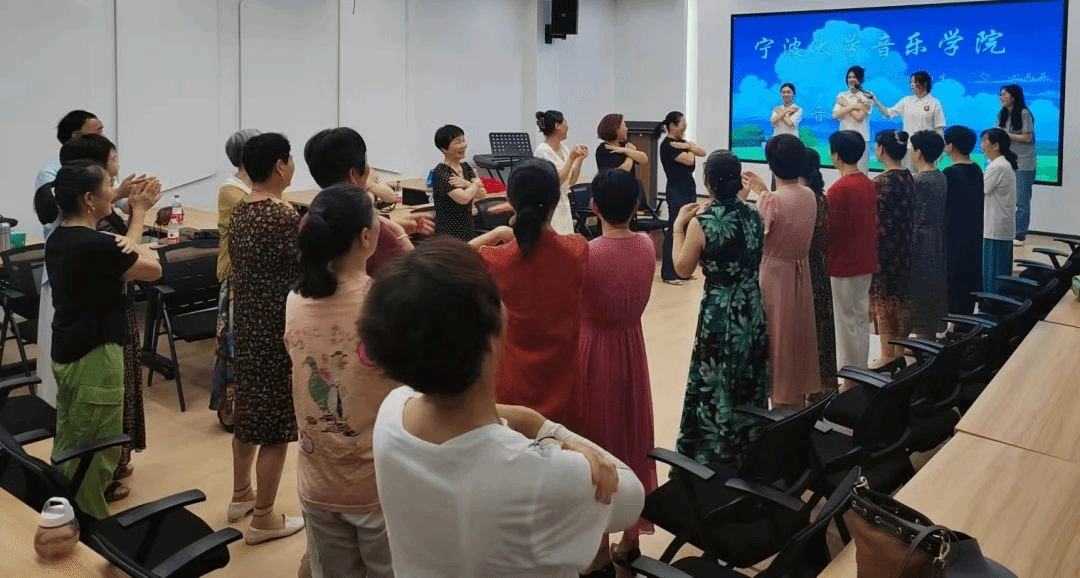 为丰富长者的精神文化生活,达到“老有所学,老有所乐”的目标。宁波大学“音乐学院‘音’爱而生,‘愈’心而乐暑期社会实践团队”的同学在7月份来到了宁波市鄞州区东吴镇老年大学,策划并组织了一系列适合老年人的音乐趣味游戏活动。这类活动旨在通过游戏互动、团体协作等方式,为老年大学的叔叔阿姨带来丰富多彩的音乐实践和体验,提高他们对于音乐的鉴赏和认知。