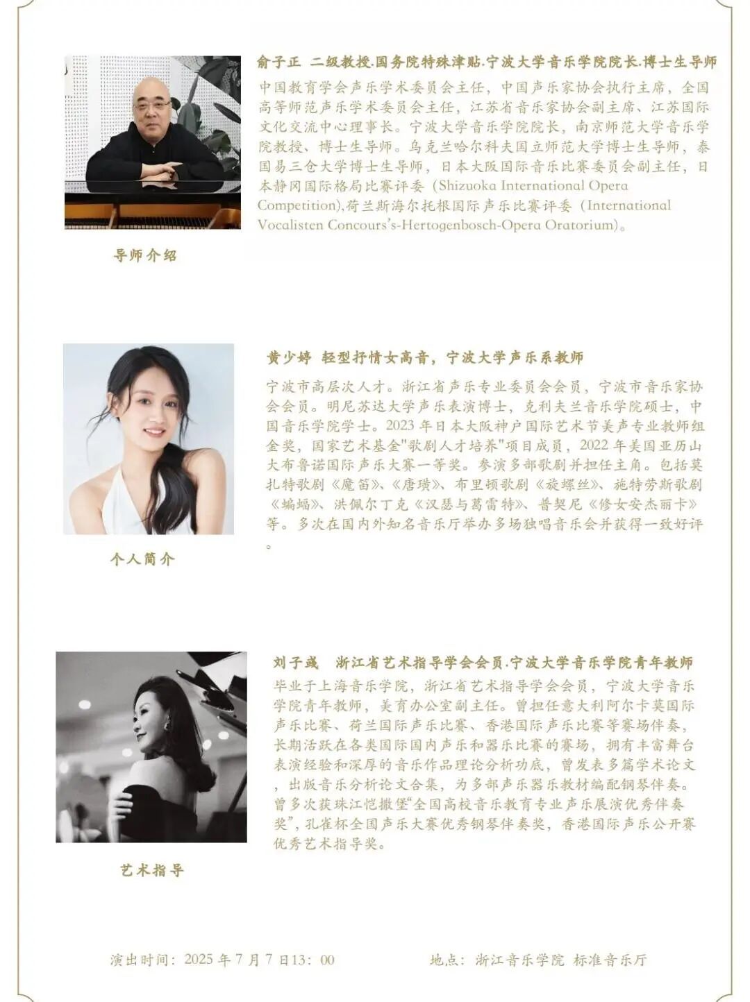 上一条:预告|陈曦独唱音乐会即将唱响 下一条:“音为梦想 乐在未来”——宁波大学音乐学院2025届毕业音乐会预告