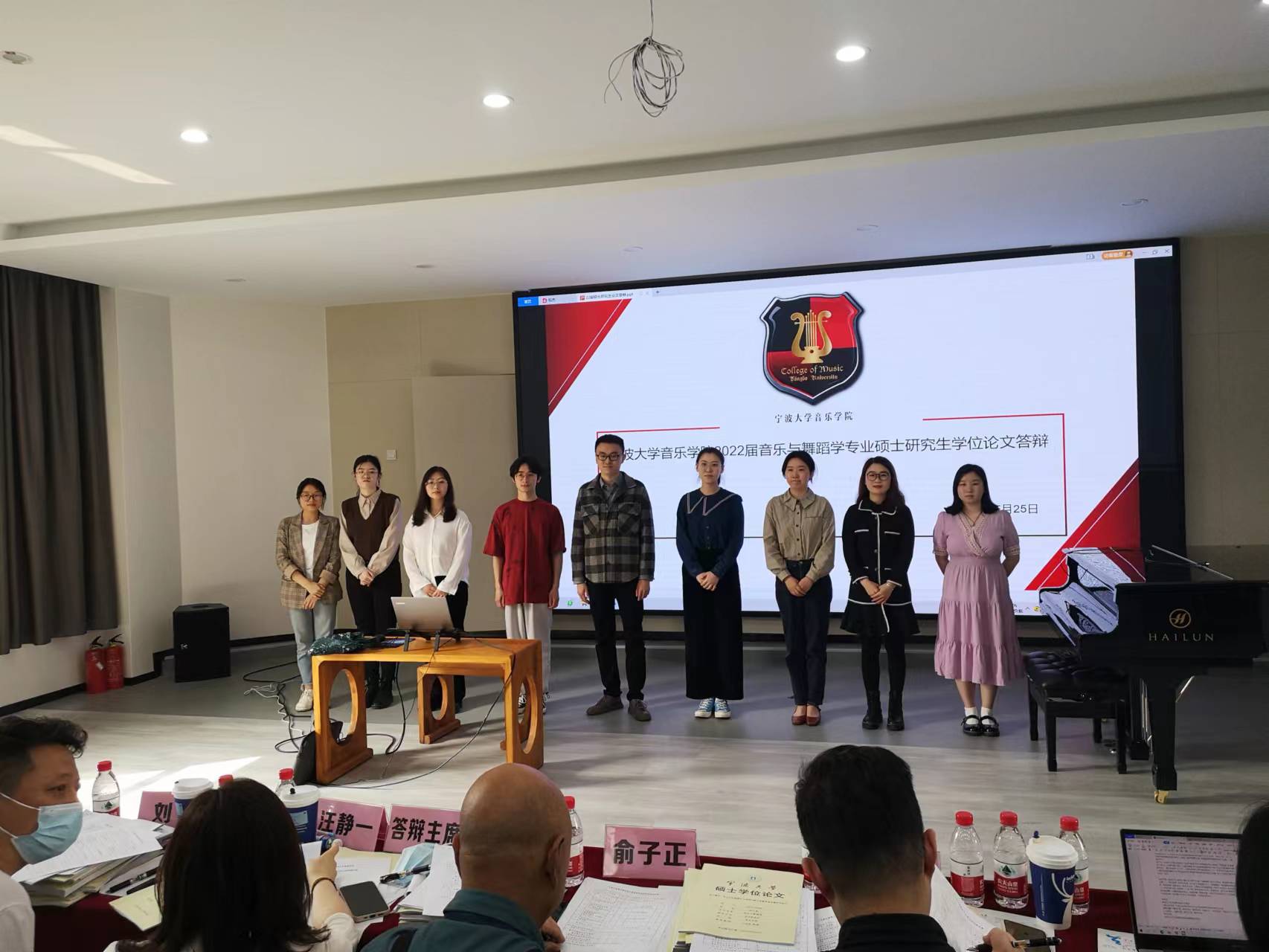 2022年5月25日8:30-16:00,我院分别在逸夫艺术楼101和406教室进行了音乐与舞蹈学专业、艺术专业硕士论文答辩,此次答辩共有18名研究生参加,经过1天的紧张答辩,18名研究生全部顺利通过答辩,这是我院从2018年4月获批一级硕士学位点和专业学位点19年开始招生以来的第一届硕士研究生,本届有19名学生参加了论文盲审,18名同学通过了盲审顺利进入答辩,此次答辩的顺利进行,标志着我院跨入了一个新的征程。
