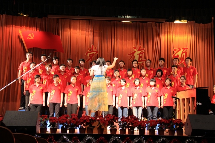 在锦绣小剧场举行了宁波大学首届周末锦绣文化航班第六站——“党旗颂”红歌专场音乐会。本次音乐会以“丹青描绘坚忍志、青春高歌红色魂”为主题,向建党九十周年献上了艺院人的一份珍贵礼物。院长喻辉、院党委书记袁虹、副书记叶春桥等学院领导和校团委毛璇老师、各学院分团委书记、学生会主席以及近300名师生观看了晚会。