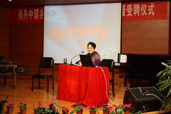 程刚书记在受聘仪式上致辞,对傅丹受聘为我校客座教授表示感谢和欢迎,同时希望傅丹女士能关心我校艺术学科的建设和发展,多给艺术学科和艺术学院一些指导和支持。傅丹女士也在受聘仪式上表示,今后将作为宁大一员积极推动宁波大学与市文联的交流和合作,并全力支持艺术学院的发展,共同为宁波文化大市建设作出贡献。
