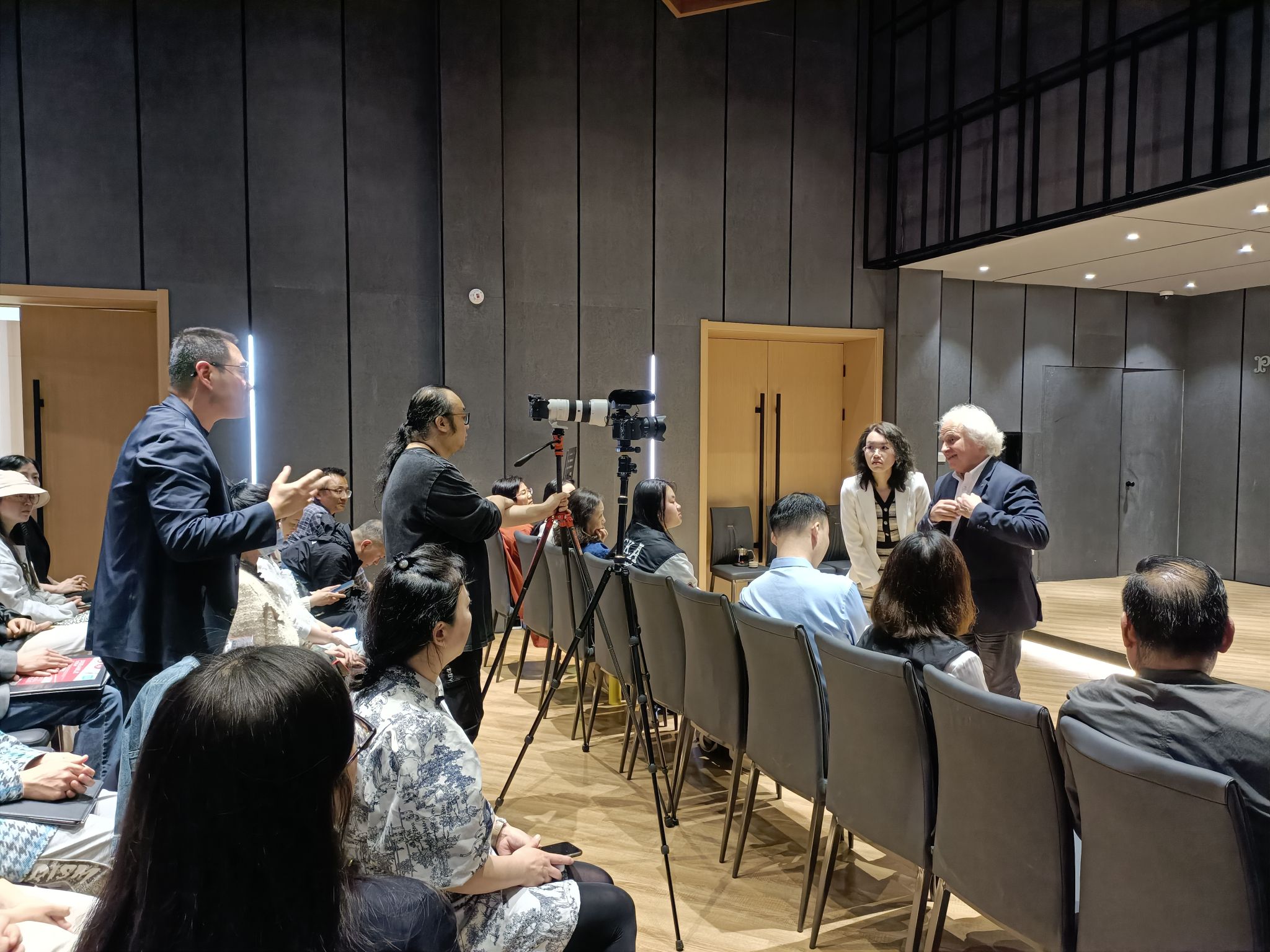 在问答环节,宁波大学音乐学院的师生向亨利教授提出了关于钢琴演奏的三个问题。对于乐谱版本的问题,亨利教授表示要参考肖邦手稿及手稿注释部分,同时要考虑当时的琴与现在的琴的区别。对于在现代钢琴上演奏肖邦作品的技巧方面,亨利教授主要强调了对渐强和重音的处理以及踏板的使用方面。