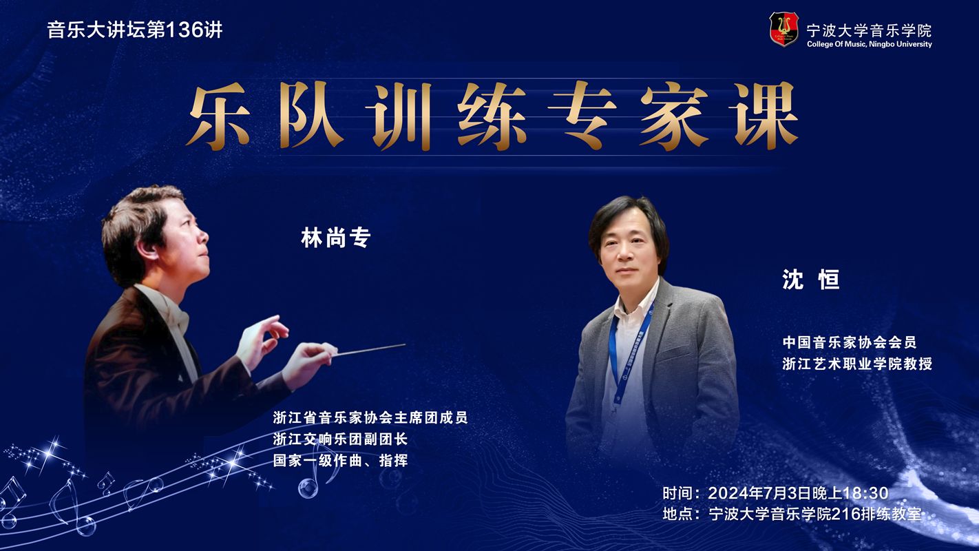 2024年7月3日,浙江省音乐家协会主席团成员、浙江交响乐团副团长、国家一级作曲、指挥林尚专,中国音乐家协会会员、浙江艺术职业学院教授沈恒在宁波大学音乐学院216排练教室举办乐队训练专家课,音乐学院部分师生参与观摩。