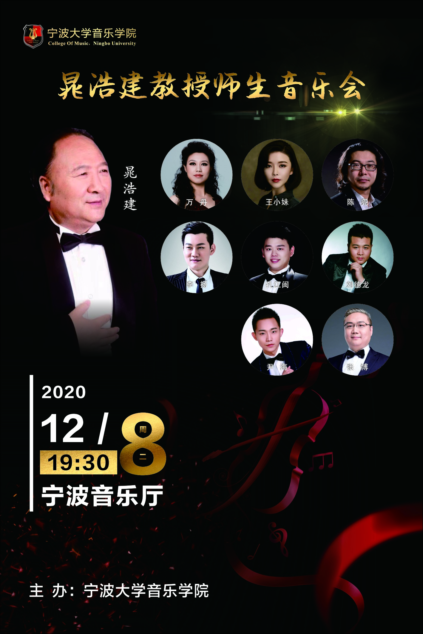 2020年12月8日晚7:30,著名声乐教育家、男高音歌唱家晁浩建老师受音乐学院俞子正院长之邀,在宁波音乐厅举办了《晁浩建教授师生音乐会》。宁波市音协艺术教育委员会会长鲁明华、宁波外事学校青年教师蔡飞、音乐学院院长俞子正、副院长王蕾、声乐教研室主任孙悦湄等出席了本场音乐会。观看本场音乐会的观众有音乐学院部分老师和学生以及宁波社会各界的声乐爱好者。
