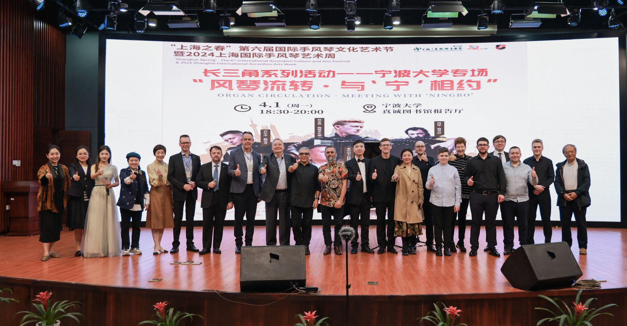 4月1日晚,风琴流转 与“宁”相约——世界著名手风琴演奏家宁波大学专场音乐会举行。本次音乐会由上海音乐家协会、上海市长宁区文化和旅游局、宁波大学音乐学院等联合主办。音乐会邀请来自“一带一路”沿线国家的7位音乐家以及宁波大学音乐学院的专业教师在这个春天献上一场高质量的视听盛宴。