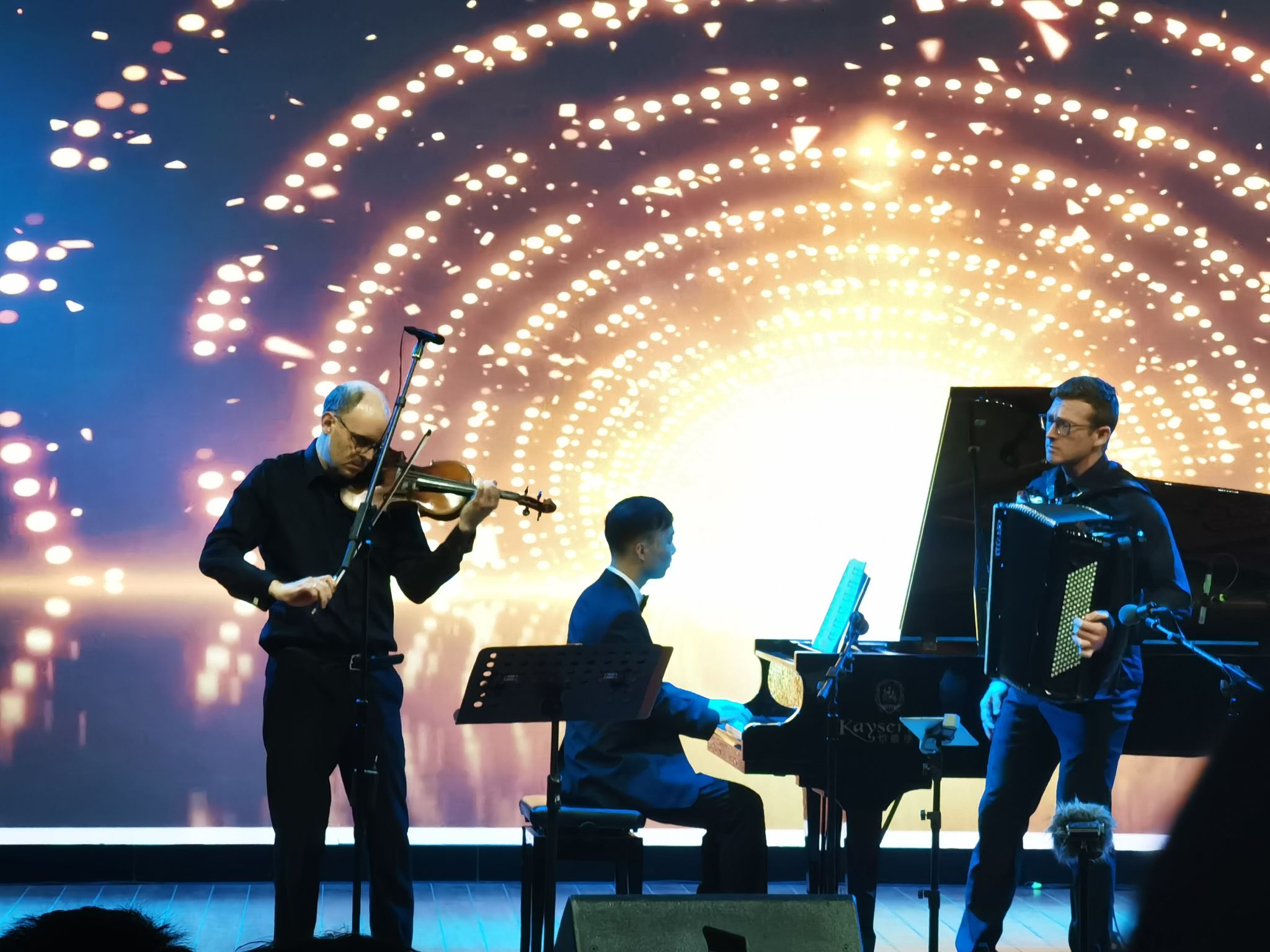 音乐会上,拉开序幕的是年仅14岁的波斯尼亚和黑塞哥维那天才手风琴少年乔尔杰·佩里奇,他曾获得2023年世界杯手风琴锦标赛古典重奏组第二名,他演奏的经典曲目《马德里》《你好朱丽叶》收获热烈掌声。
