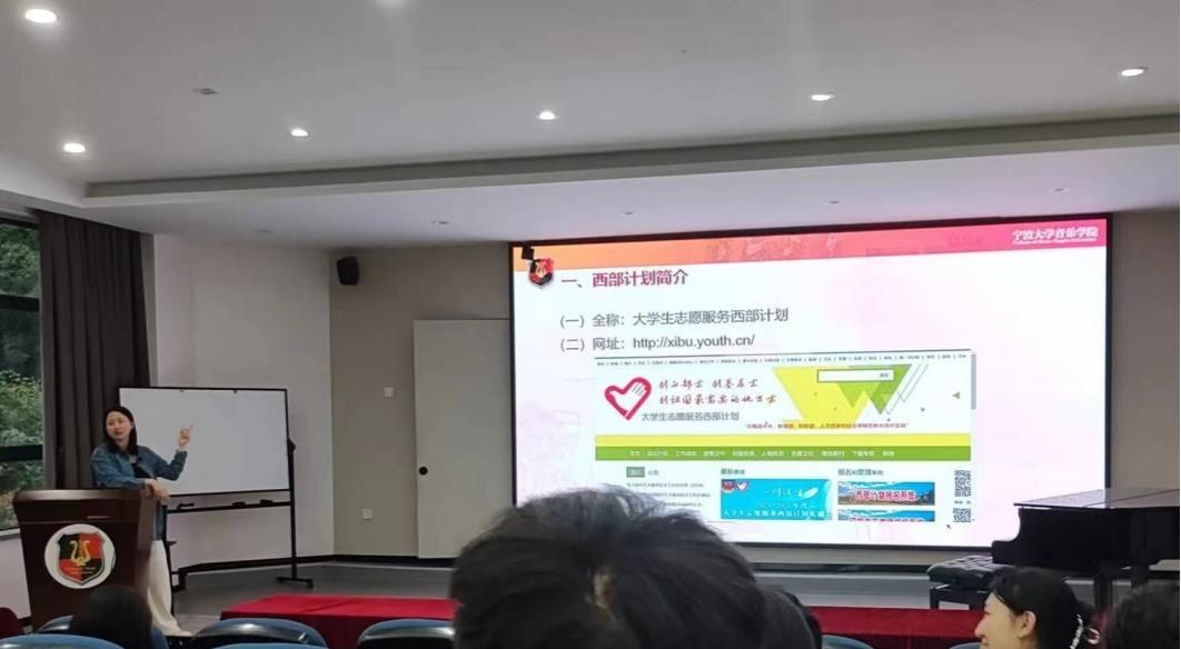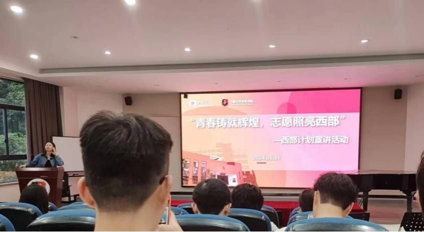 在宣讲会上,同学们观看了西部计划宣传片,对大学生志愿服务西部计划的相关内容有了一定的了解,从中也见证了西部计划志愿者们的青春朝气与奉献精神。此外,依据往年我省对口服务的范围,宣讲会还向同学们播放了部分对口地区西部计划招募季的宣传片,让同学们能够更为直观地感受到西部计划开展以来西部地区的蓬勃发展,能够更为深刻地理解大学生志愿服务西部计划赋予我们青年一代的青春使命与奋斗内涵。