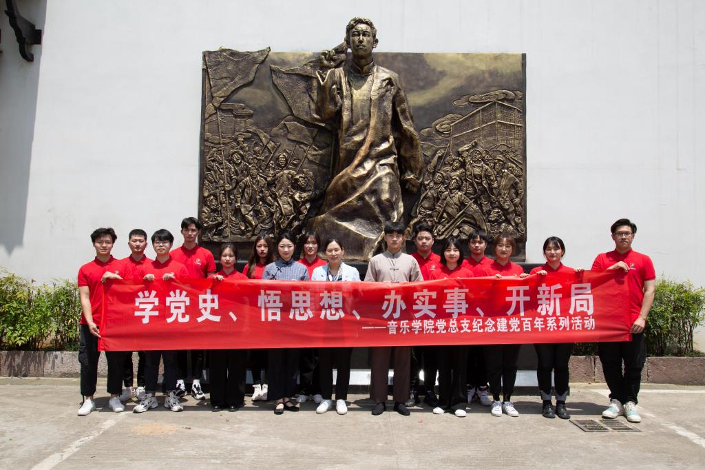 2021年4月9日上午8:30 ,音乐学院党总支书记屠春飞与红色文艺轻骑队成员在宁波大学西区小音乐厅集合,前往张人亚故居参观学习,听学堂讲解员讲述张人亚守护党章的故事。