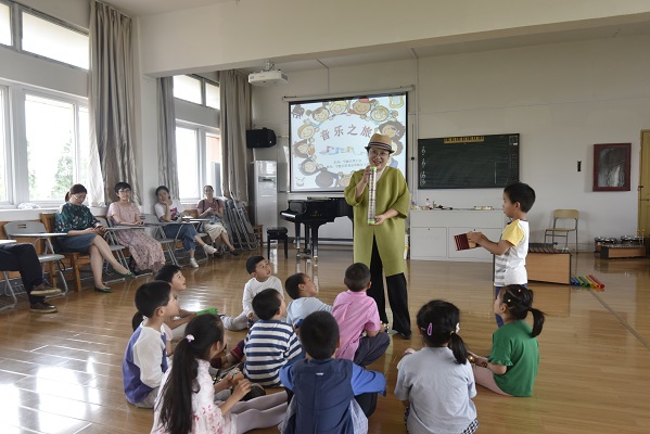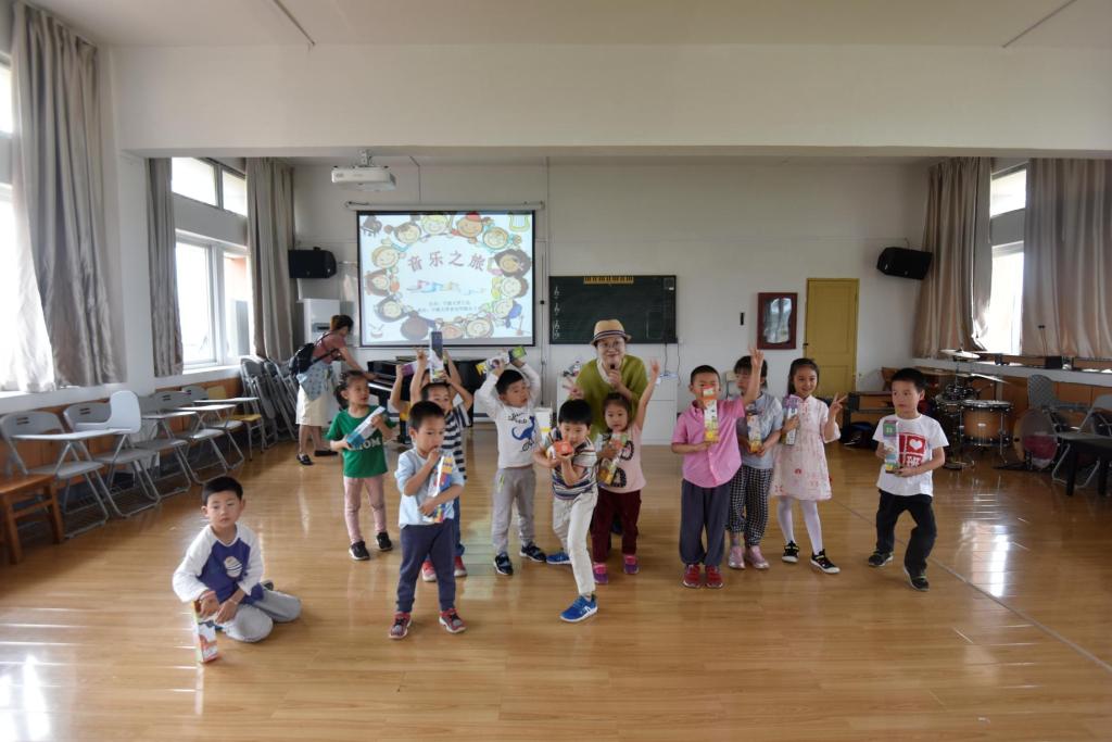 “音乐之旅”活动由音乐学院的副院长、副教授、省“三育人”先进个人、省师德先进个人王蕾老师主讲。王蕾老师首先邀请小朋友们一起学唱“你好”歌,让大家互相认识;接着让小朋友们各自挑选乐器一件并讲解该乐器名称以及使用方法;最后,王蕾老师带领大家通过身体的各种动作去体验、塑造和表达音乐的本质,在游戏中培养音乐知识与素养。