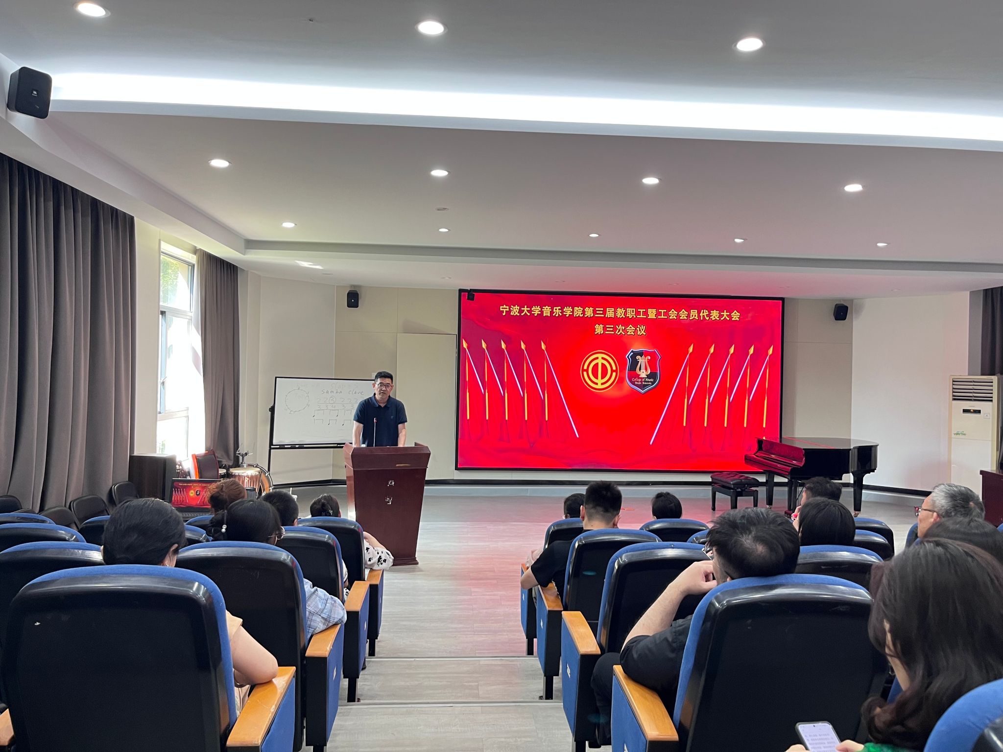 6月26日,音乐学院第三届第三次教职工暨工会会员代表大会在阶梯一召开,会议由音乐学院分工会主席赵玉卿主持。