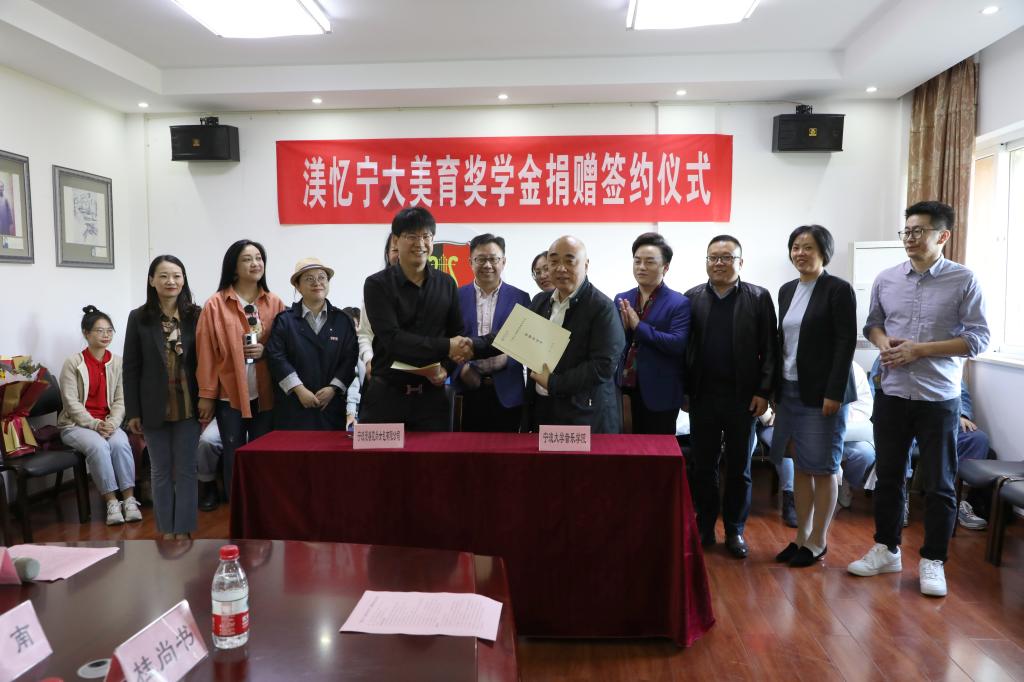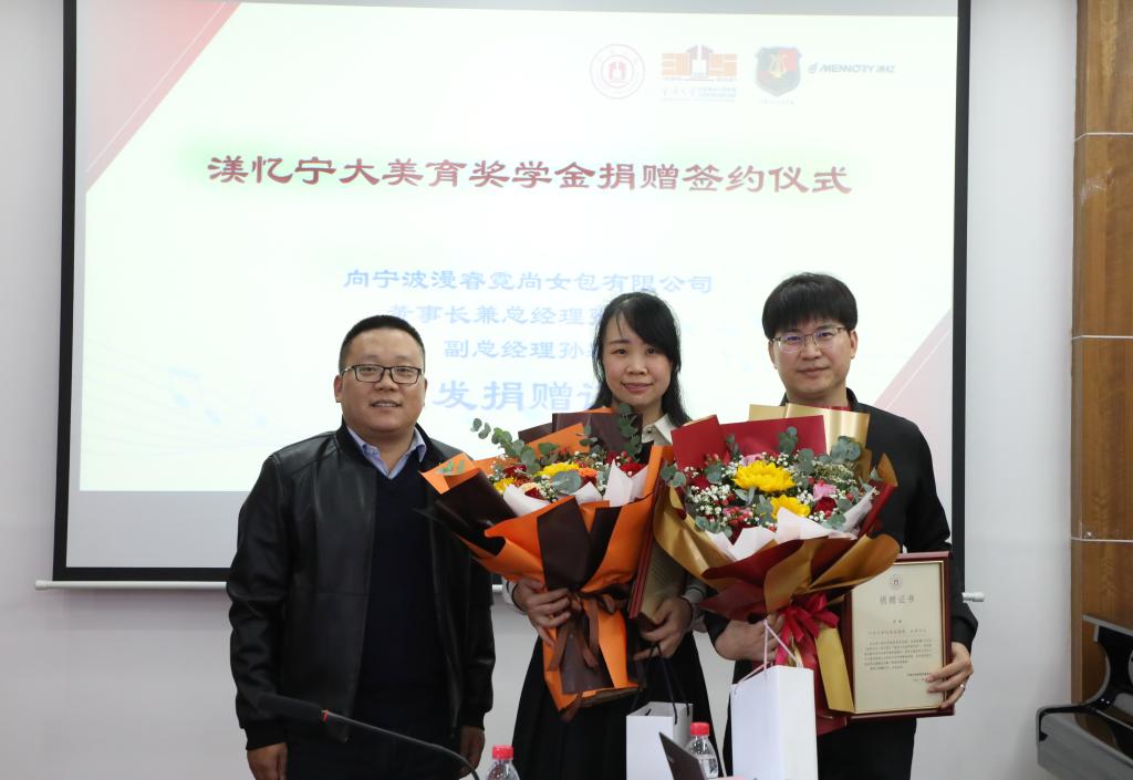 10月29日下午,时值宁波大学建校35周年暨三校合并25周年之际,宁波大学美育教育中心与宁波漫睿霓尚女包有限公司签订“渼忆宁大美育奖学金”捐赠协议。我校俞子正、李国平、屠春飞、桂尚书、王蕾等人,及美育教育中心老师代表与音乐学院学生代表出席捐赠签约仪式。