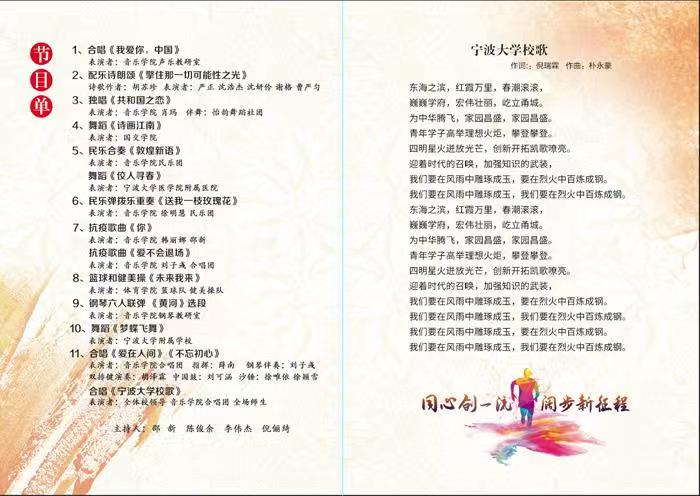 2020年12月31日下午3点,宁波大学新年音乐会在林杏琴会堂如期举行。因疫情防控需要,音乐会最终改为线上观看。本次新年音乐会由音乐学院院长俞子正教授亲自上阵担任导演,刘畅副教授、俞笛副教授、常振华博士、张东方波士、宋剑老师、刘子彧老师、周艳秋老师参与了筹备和组织保障工作。