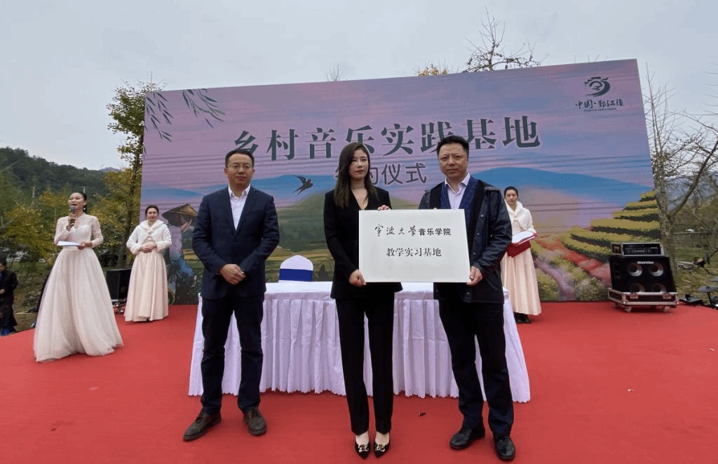 11月28日上午,海曙鄞江镇“我和我的家乡”银杏音乐节在趣湾庄园隆重开幕,宁波大学音乐学院相关负责人与鄞江镇人民政府相关负责人签约,并举行了授牌仪式,宁波大学-鄞江镇“新乡村音乐实践基地”正式落户鄞江镇。